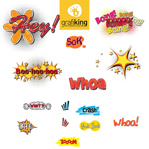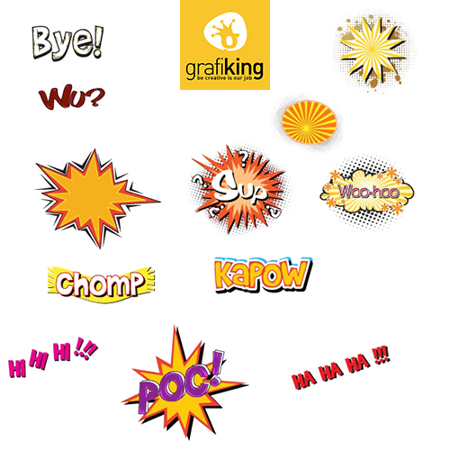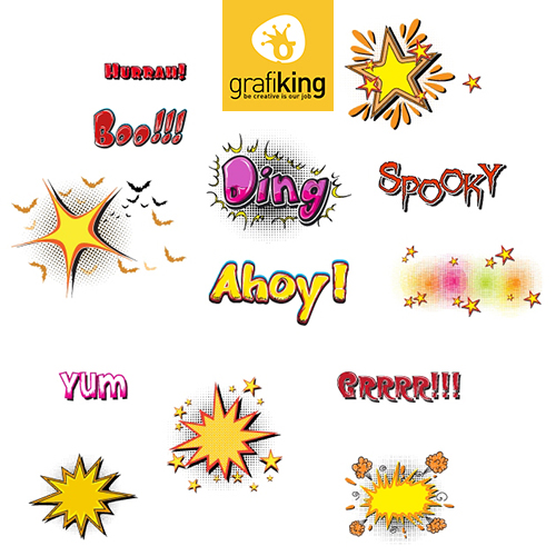 GrafiKing Depo'dan tam 125 adet farklı patlangaç vektörünü ücretsiz olarak indirebilirsiniz. İçerisinde EPS ve AI formatları yer alan bu patlangaçlarla çizgi roman tadında tasarımlar üretebilirsiniz. Keyifli çalışmalar ;)